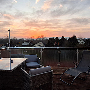 Dachgeschosswohnung in einem Zweifamilienhaus (Ortsrandlage) mit separatem Hauseingang, große Dachterrasse (Südwesten) mit weitem Blick für herrliche Sonnenuntergänge.